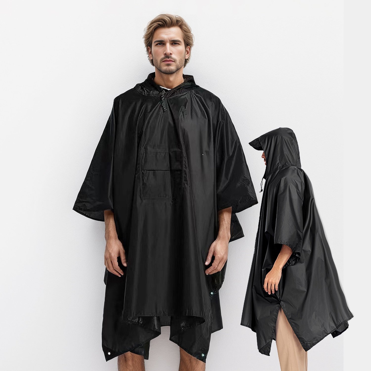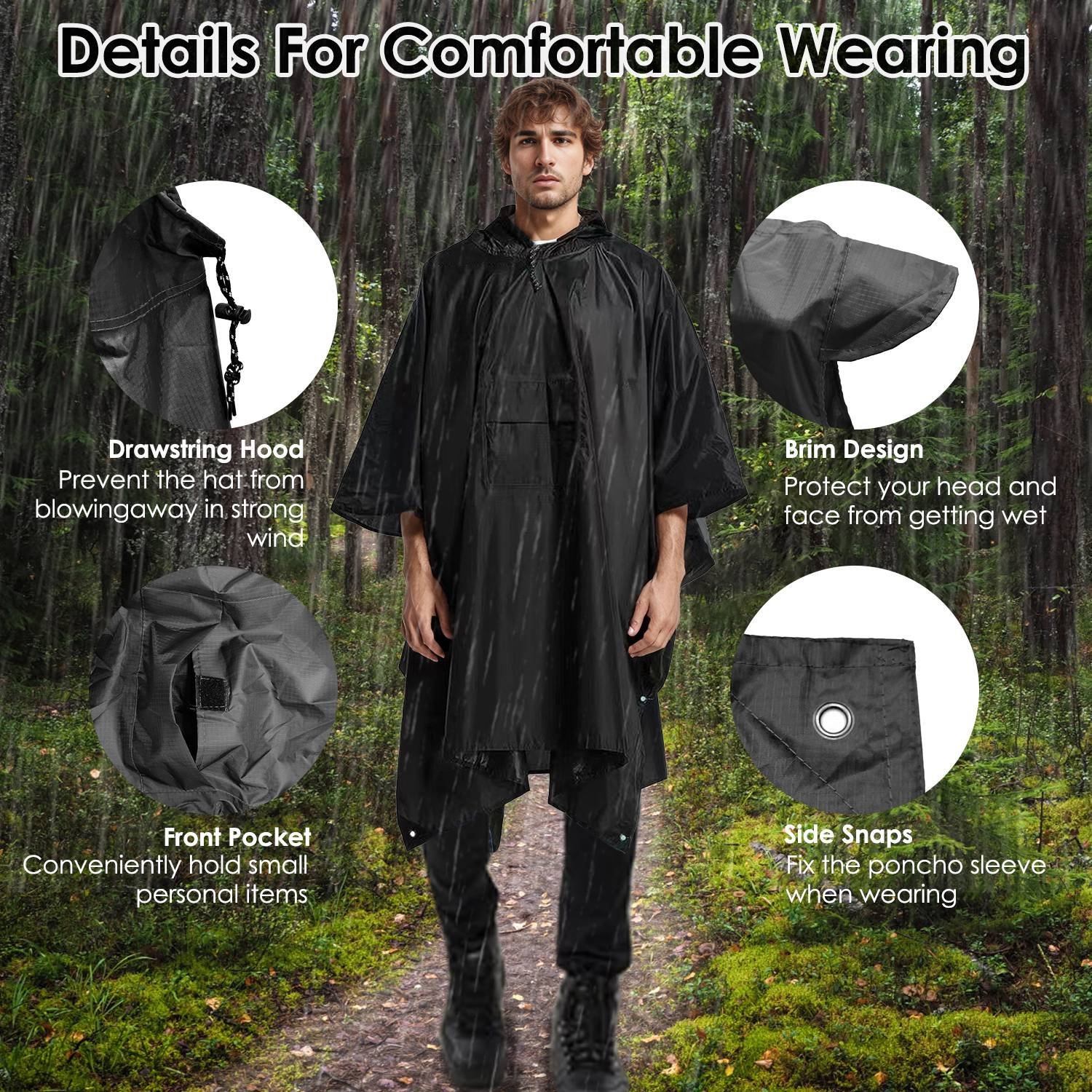*3-in-1 Raincoat For Outdoor Activities*:Featured with grommets on four corners,this hooded rain poncho can be converted into a temporary tent to against sunlight or rain. Or flat it on the ground to serve as a camping tarp. This 3-in-1 unisex adult rain poncho is a must-have accessory for outdoor activities!