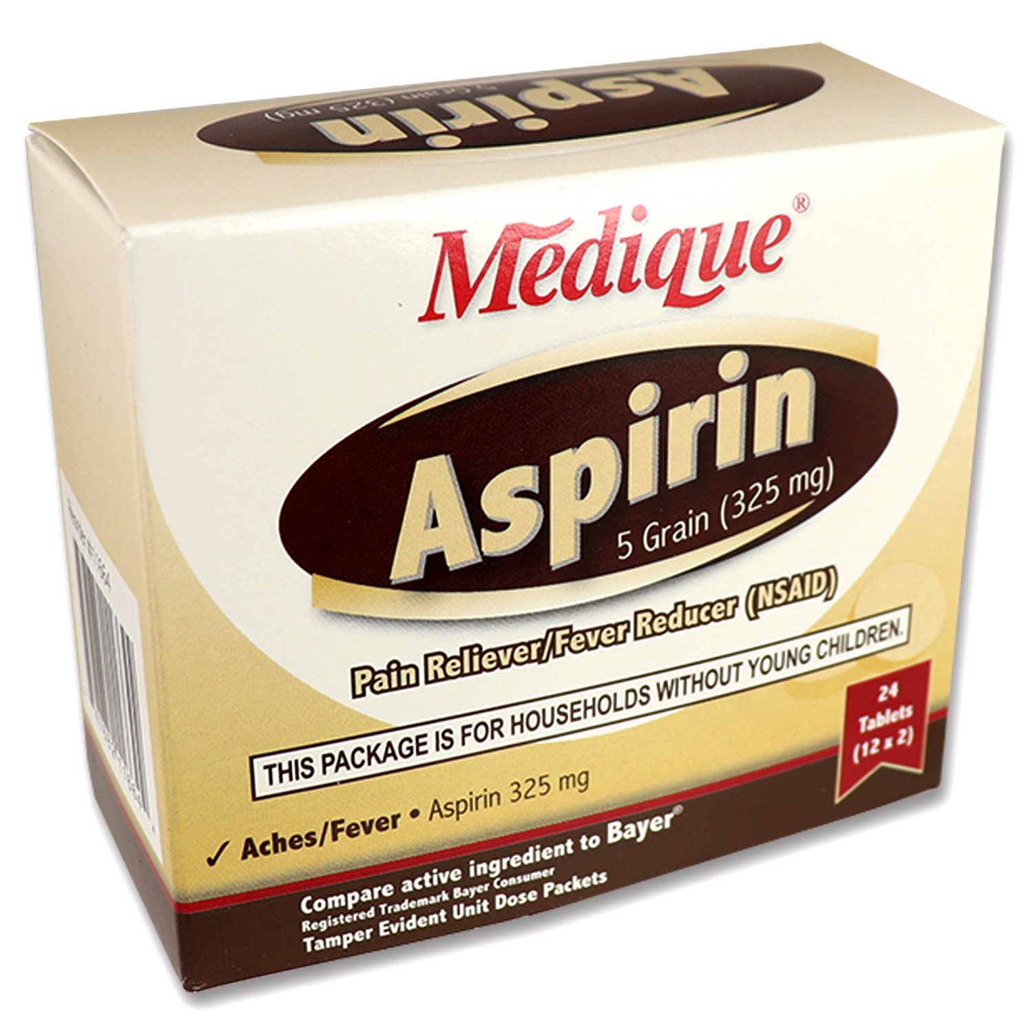 Aspirin, 24 tablet box, 12 packets of 2 tabs