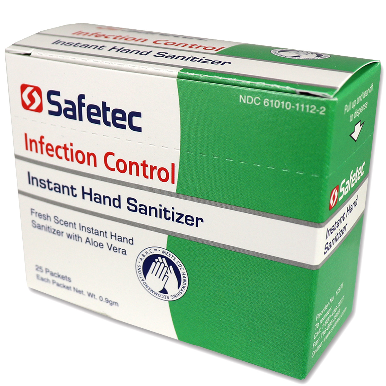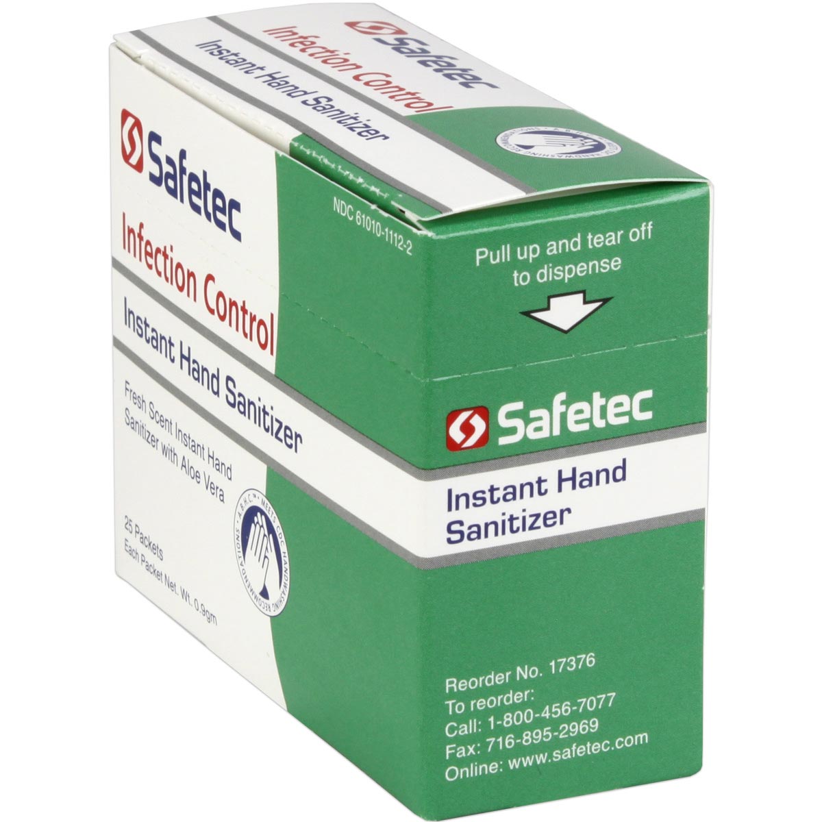 Safetec Instant Hand Sanitizer (Fresh Scent) kills 99.9% of widespread germs and evaporates completely to leave hands not feeling sticky. It contains aloe vera for added moisture with each use, increases skin hydration and preserves skin’s health. Convenient Hand sanitizer packets.