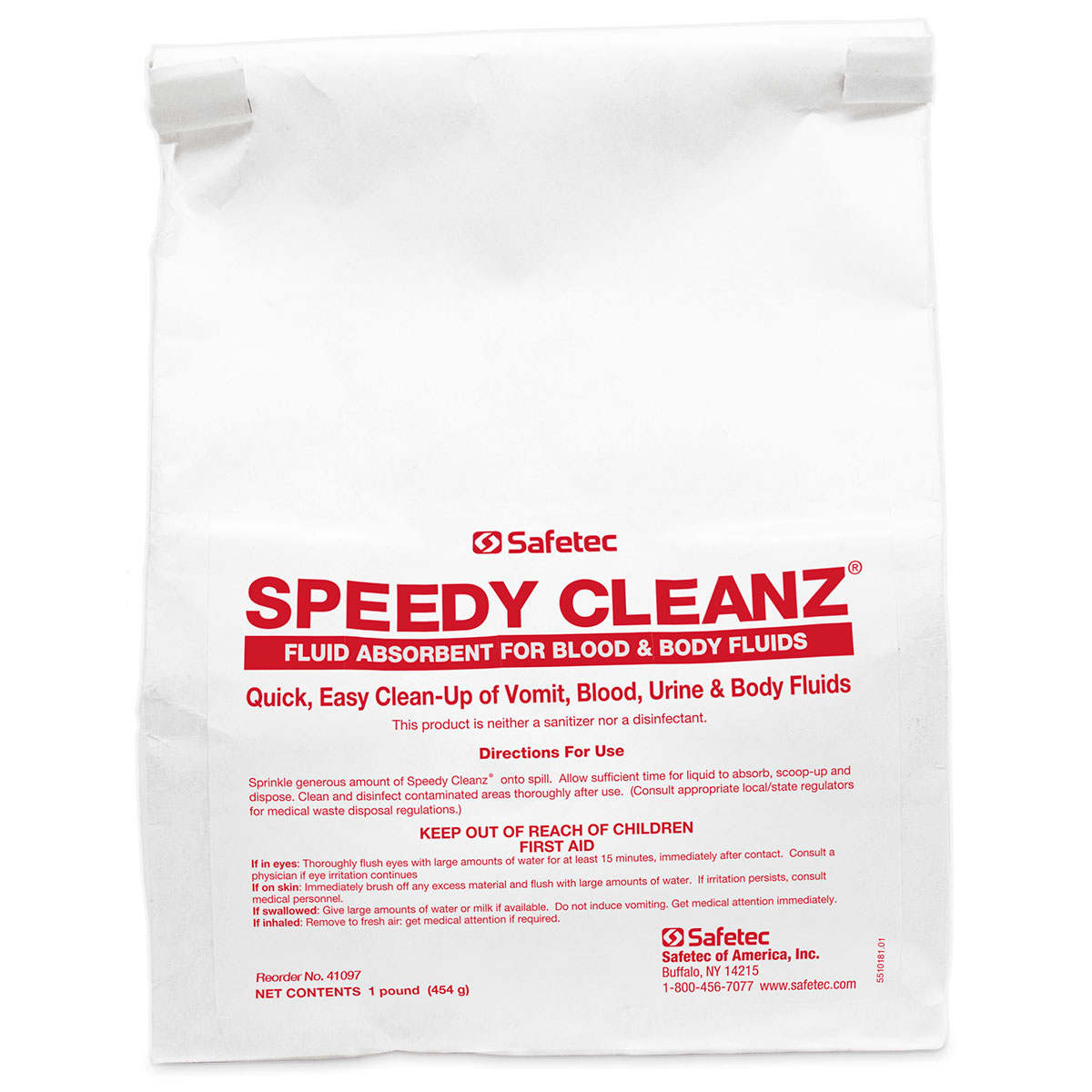 Speedy Cleanz® Fluid Absorbent - The economical alternative to Red Z®. Apply it to vomit or urine as well as other body fluid spills and watch it transform the liquid into an odorless, semi-solid mass. It’s non-toxic, biodegradable properties make it environmentally friendly and easily disposable.