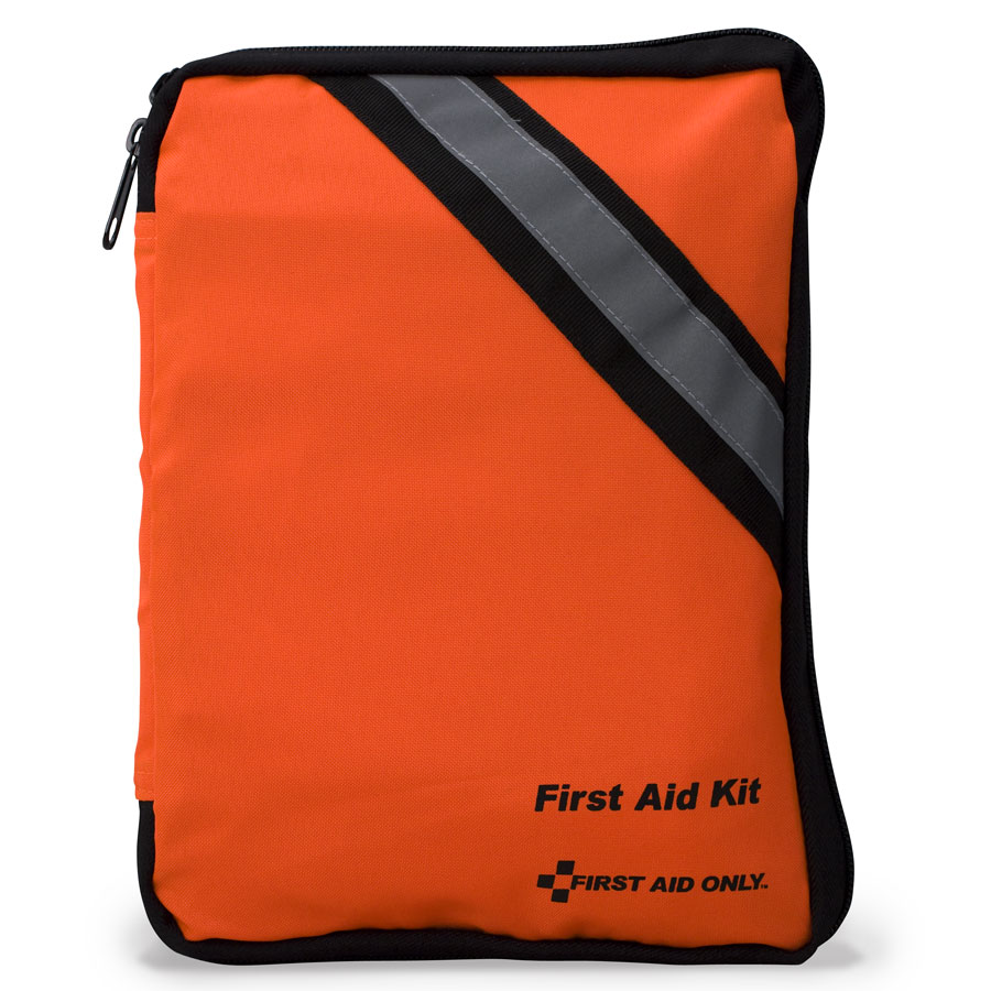 205 Piece Outdoor Kit, Large Softsided Case Perfect for hiking, camping, marine adventures, home & auto. Our outdoor softsided kit features all the essential first aid items for minor aches and injuries. Supplies are easy to find in patent pending, clear-pocket pages. Kit Includes: - (50) Adhesive plastic bandages, 3/4" x 3" - (25) Fabric bandages, 3/4" x 3" - (10) Fabric bandages, 1" x 3" - (4) Knuckle fabric bandages - (4) Fingertip fabric bandages - (2) Elbow & knee plastic bandages, 2" x 4" - (10) Junior plastic bandages, 3/8" x 1-1/2" - (3) Butterfly wound closures - (1) Trauma pad, 5" x 9" - (10) Gauze dressing pads, 2" x 2" - (4) Gauze dressing pads, 3" x 3" - (2) Gauze dressing pads, 4" x 4" - (1) Conforming gauze roll bandage, 2" - (4) Aspirin tablets - (4) Ibuprofen tablets - (4) Extra-strength non-aspirin tablets - (12) Alcohol cleansing pads - (12) BZK antiseptic towelettes - (3) Antibiotic ointment packs - (3) First aid cream packs - (3) Insect sting relief pads - (3) Castile soap towelettes - (2) First aid tape roll, 1/2" x 5 yd. - (1) Instant cold compress, 4" x 5" - (1) Burn relief pack, 3.5 gm. - (1) Sterile eye pad - (1) Sunscreen pack - (2) Lip ointment packs - (4) Moleskin squares, 2" x 2" - (1) Finger splint, 6" x 11/16" - (10) Cotton-tipped applicators, 3" - (2) Safety pins - (2) Exam quality vinyl gloves - (1) Scissors, nickel plated, 4-1/2" - (1) Tweezers, 3" - (1) First aid guide Kit Dimensions: 9-1/4"x7-1/2"x2-7/8"
