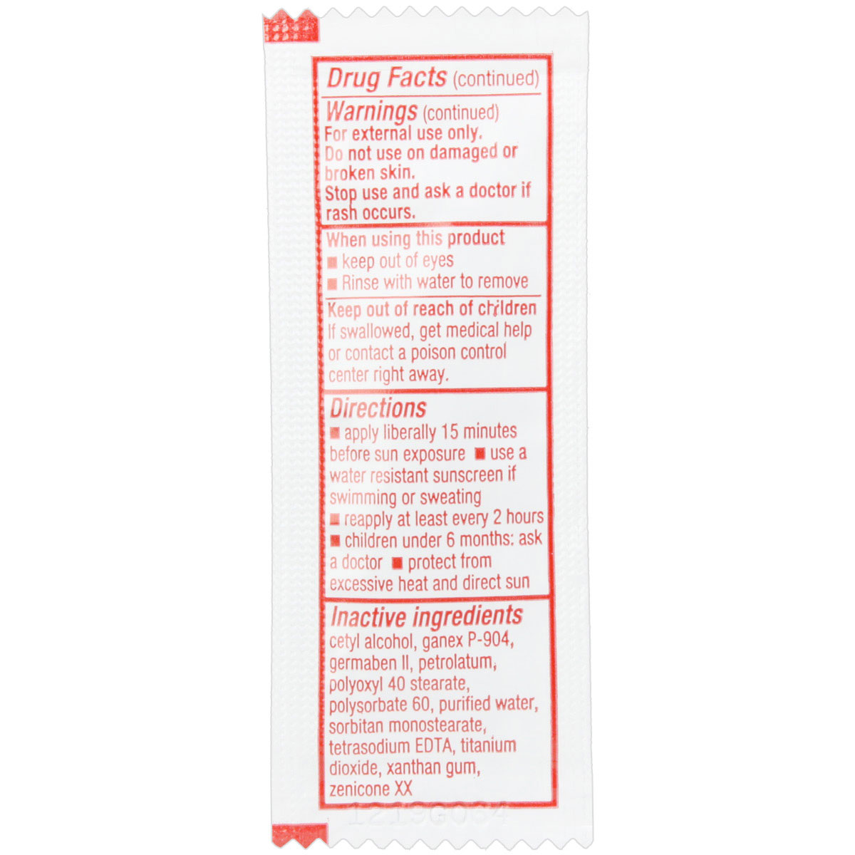 Sunscreen, 3.5 g. (.123 oz.) Pouch, 1 each Sunscreen, 3.5 g. (.123 oz.) Pouch, 1 each Sunscreen, 3.5 g. (.123 oz.) Pouch, 1 each